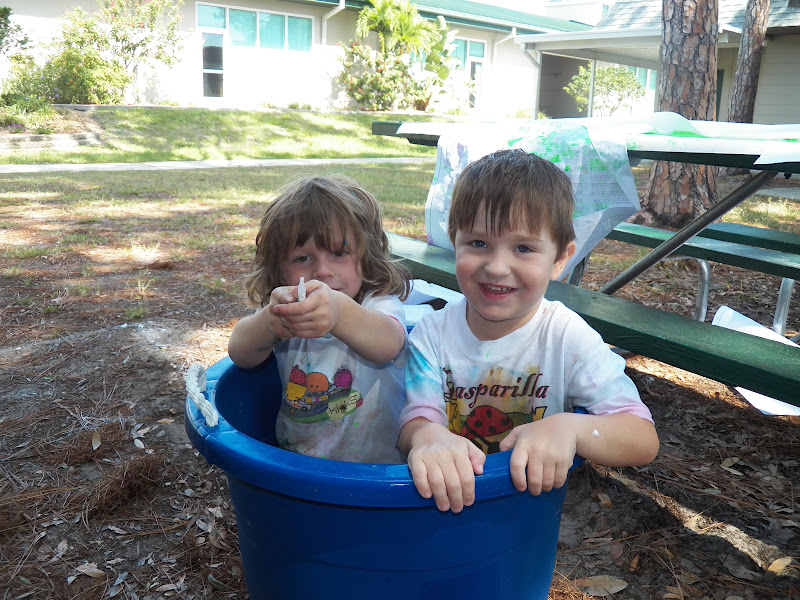 Best art class yet! The toilet plungers were a hit. It is so nice to let the kids put their feet in paint and walk around.